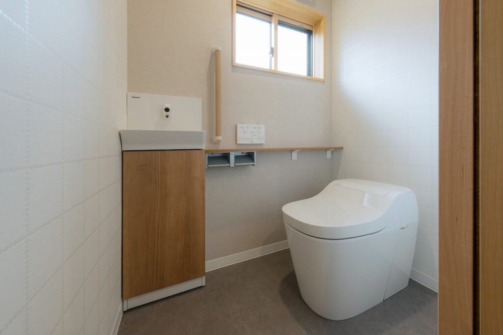 トイレは元々比較的新しかったですが、家全体の間取りを変更するので、全面的に改装する事になりました。引き戸は利便性を考慮して引込戸にしています。