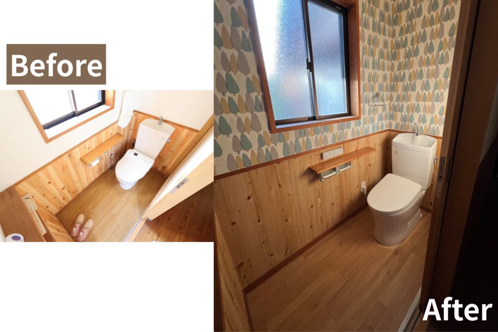 トイレの取り替えに伴い壁クロスの貼替もしました。